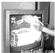 用湿布擦开着的电视