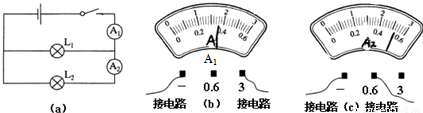 如图(a)所示,当开关S闭合时,两只电流表的示数分别由(b)、(c)两图读得,则电灯L