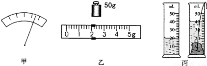 (2)石块放在天平的左盘,右盘放砝码,当天平平衡后,砝码有50g的一个,游码所对应的标尺的位置如图乙所示,则石块的质量为______g.