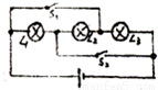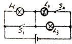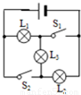 下面的电路图中,当开关处于不同状态时,回答三个灯泡的发光情况,及它们的连接关系