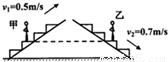 甲站在0.5m/s匀速上行的自动扶梯上,乙站在0.7m/s匀速下行的自动扶梯上.甲、乙两人质量相等,甲上行中动能