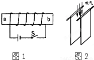 极(选填“N”或“S”).如图2所示,在两张纸片中间向下吹气,可观察到两纸片