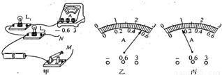 如图甲所示,用电流表测电流.(1)若将线头M、N都接到电流表为“0.6”接线柱上,此时电流表的示数如图乙所示.则电流表测的是灯