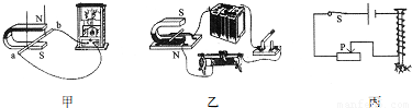 现象;电动机、电磁起重机、动圈式话筒中,根据乙图原理制成的是