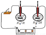 在“探究电流通过导体产生的热量与电阻间关系”的实验中,两阻值分别为R和2R的电阻丝浸在相同质量和初温的煤油中,每一烧瓶里各插入一温度计,如图所示,电流通过导体产生的热量不易直接观察,本实验中通过
