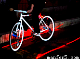有一种自行车安装有激光系统,人在晚上骑车时,该系统发出的激光在路面上形成“虚拟自行车道”,如图所示.它可以提醒来往车辆,注意行车安全.下列说法正确的是( )