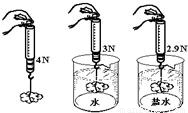 在课外小组活动中,小刚将一挂在弹簧测力计下的形状不规则的石块分别浸没有水和盐水中,弹簧测力计的示数如图所示,石块在水中所受的浮力为