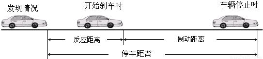| 速度/km?h-1 | 反应距离/m | 制动距离/m | 停车距离/m | |||
