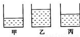 如图所示,甲、乙、丙是三个完全相同的圆柱形容器,将质量相等的酒精、硫酸和盐水分别装在三个容器中,根据表中给出的密度值,甲乙丙三个容器分别装的是( )