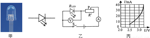 发光二极管(LED)具有高亮度、低能耗等优点,将在我市推广使用.如图甲所示是LED的实物图和元件符号.把一个额定电压为2.5V的LED接人电源电压恒为4.5V的电路,如图乙所示.