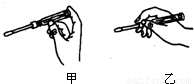 (填“甲”或“乙”);若按正确的握法,发现氖管发光,则笔尖金属体接触的是