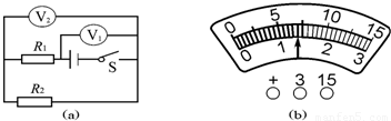 在如图(a)所示电路中,当闭合开关后,两个电压表指针偏转均如图(b)所示,则电阻R