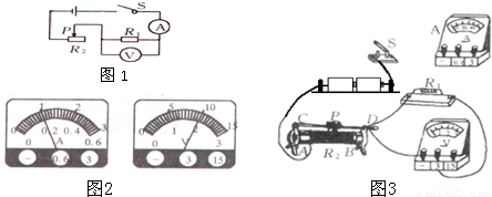 (3)检查电路无误后,小明将滑片P滑到某一位置时,两表读数如图3所示,由此可知R