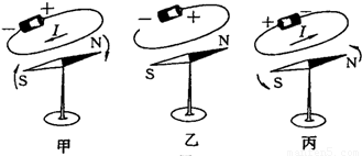 如图所示的实验叫奥斯特实验,比较甲、乙,说明______;比较甲、丙,说明______.这一实验找到了______和______之间的联系.