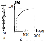 如图甲所示的滑轮组,每个滑轮等重.不计绳重和摩擦,物体重G1从200N开始逐渐增加,直到绳子被拉断.每次均匀速拉动绳子将物体提升同样的高度.图乙记录了在此过程中滑轮组的机械效率随物体重力的增加而变化的图象.