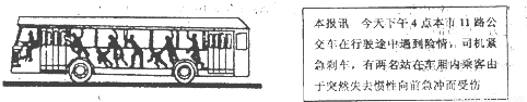 在乘坐公交车时,我们常常会遇到如图所示的情景.报纸、电视、网络等新闻媒体也经常从不同角度对此类事情进行过报道.为了避免这种情况的发生,保证常客的安全,现在公交车上的语音提示系统会自动提醒大家:“上车的乘客要扶好站稳”.