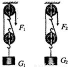 如图所示,小王用两个相同的滑轮组(摩擦不计),分别将重力不同的两个物体匀速提高到相同高度,其中G