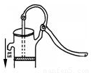 如图是一个简易压水泵,整个手柄是一个弯曲的杠杆.图中箭头表示此时活塞的运动方向.请在图上标出支点O,画出作用在手柄上的最小动力F