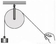 定滑轮在使用时相当于一个杠杆.如图所示,某人用绳子沿着倾斜方向通过定滑轮拉住钩码,已知人手的拉力为F,钩码重力为G.