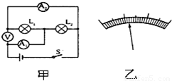 2、V三只电表的指针均如图乙所示,已知V表接入的是“-”、“15”,则:L