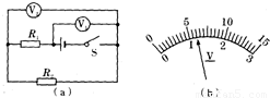 如图(a)所示电路中,当闭合开关后,两个电压表指针偏转均为图(b)所示,则电阻R
