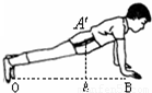 俯卧撑是一项常见的体育健身活动.如图所示是小明同学做俯卧撑时的示意图.小明重600N,1min钟内做俯卧撑30个,每做一次肩膀升高50cm.小明身体可视为杠杆,O为支点,A'为重心,OA=1m,B到O点的距离OB=1.5m.则地面对手的支持力