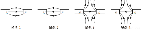 在研究两个靠近的异名磁极周围磁感线的分布时,几位同学提出了以下四种猜想: