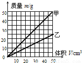 甲、乙两种物质的质量和体积关系图象如图所示,由图象可知( )