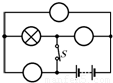 如图所示电路中有两个小灯,请在图中○内,分别填入×及A或V的符号,要求电键闭合时两灯均能发光,且两电表的示数均不为零.
