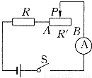 如图所示电路中,电源电压为3V且保持不变,R=10Ω,滑动变阻器的最大阻值R′=20Ω.当开关S闭合后,在滑动变阻器的滑片由A端移动到B端的过程中,电流表示数的变化范围是