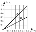 在某一温度下,连接在电路中的两段导体A和B,电流与其两端电压的关系如图所示.由图中信息可知( )