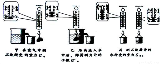 (2)石块浸没在水中后测力计的示数G′=______ N,由此可得石块所受浮力F