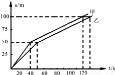 如图所示是甲、乙两人在长25m的游泳池中游了两个来回的路程--时间图象,对该图象进行定性分析可得出结论:①