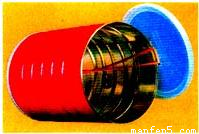 如图所示,在一个罐子的盖和底各开两个小洞,将小铁块用细绳绑在橡皮筋的中部穿入罐中,橡皮筋两端穿过小洞用竹签固定,做好后将它从不太陡的斜面滚下,则观察到的现象是