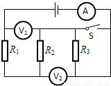 2,电流表A的示数为I;当开关S闭合时,电压表V