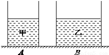 如图所示,底面积不同的圆柱形容器A和B分别盛有甲、乙两种液体,两液面相平且甲的质量大于乙的质量.若在两容器中分别加入原有液体后,液面仍保持相平.则此时液体对各自容器底部的压强P