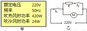 小明看到家里的电吹风机,发现其上的铭牌如图甲所示,并进一步查阅说明书发现其内部电路如图乙所示(其中