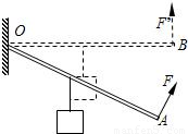 如图所示,杠杆可绕O点转动,力F作用在杠杆一端且始终与杠杆垂直;在将杠杆缓慢地由位置A拉到位置B的过程中,力F( )