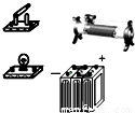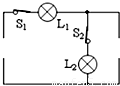 从电源、电流表和电压表中选择两个器材,在下图中的空缺处填入它们的符号,使两个相同灯泡都能发光.(画出一种)