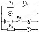 如图所示,a、b、c表示的是伏特表或安培表,当K