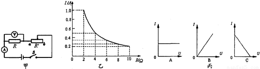 利用如图甲所示的电路,在研究电压一定时,通过导体的电流跟电阻的关系时,得到了I与R的关系图象,如图乙所示.