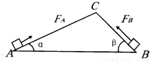 ∠β大于∠α,同一个物体分别在AC和BC斜面受平行斜面的拉力从底端匀速运动到C点,所需拉力分别为F