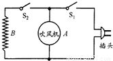 如图所示是一把既能吹冷风,又能吹热风的电吹风的简化电路,图中A是吹风机,B是电热丝.将插头插入插座,若只闭合开关S