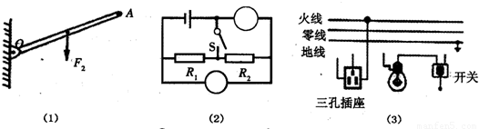(1)为使杠杆OA保持静止,画出在A点所加最小力F