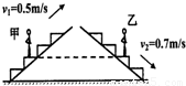 甲站在0.5m/s匀速上行的自动扶梯上,乙站在0.7m/s匀速下行的自动扶梯上.甲、乙两人质量相等,甲上行中动能