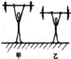 甲比乙高,如果举起相同质量的杠铃所用时间相等,如图所示,则( )