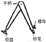 的作用可将其固定在黑板上,另一脚末端的粉笔通过螺母固定,螺母上刻有细小花纹是为了增大
