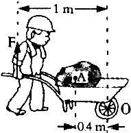 建筑工地上,工人用独轮车运送石块如图所示,石块与独轮车的总重为600 N.重心在A点,则工人两手对车所施加向上的力F是