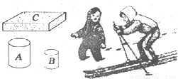 给你如图所示器材,其中A和B是由同种材料制成的均匀圆柱体,C是泡沫塑料.请你根据右图所示的场景,设计一个实验,探究压力的作用效果与受力面积的关系.要求写出实验步骤、现象和结论.
