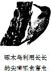 A.啄木鸟的嘴很尖细,可以增大压强,从而凿开树杆,捉到躲藏在深处的虫子